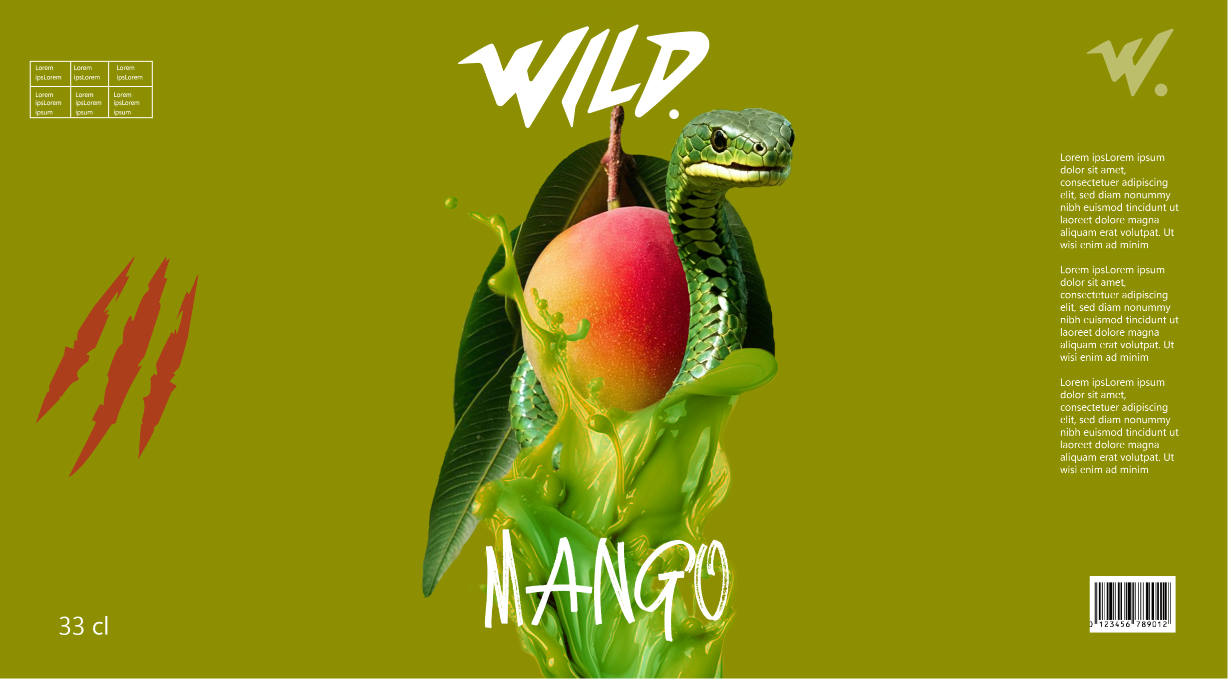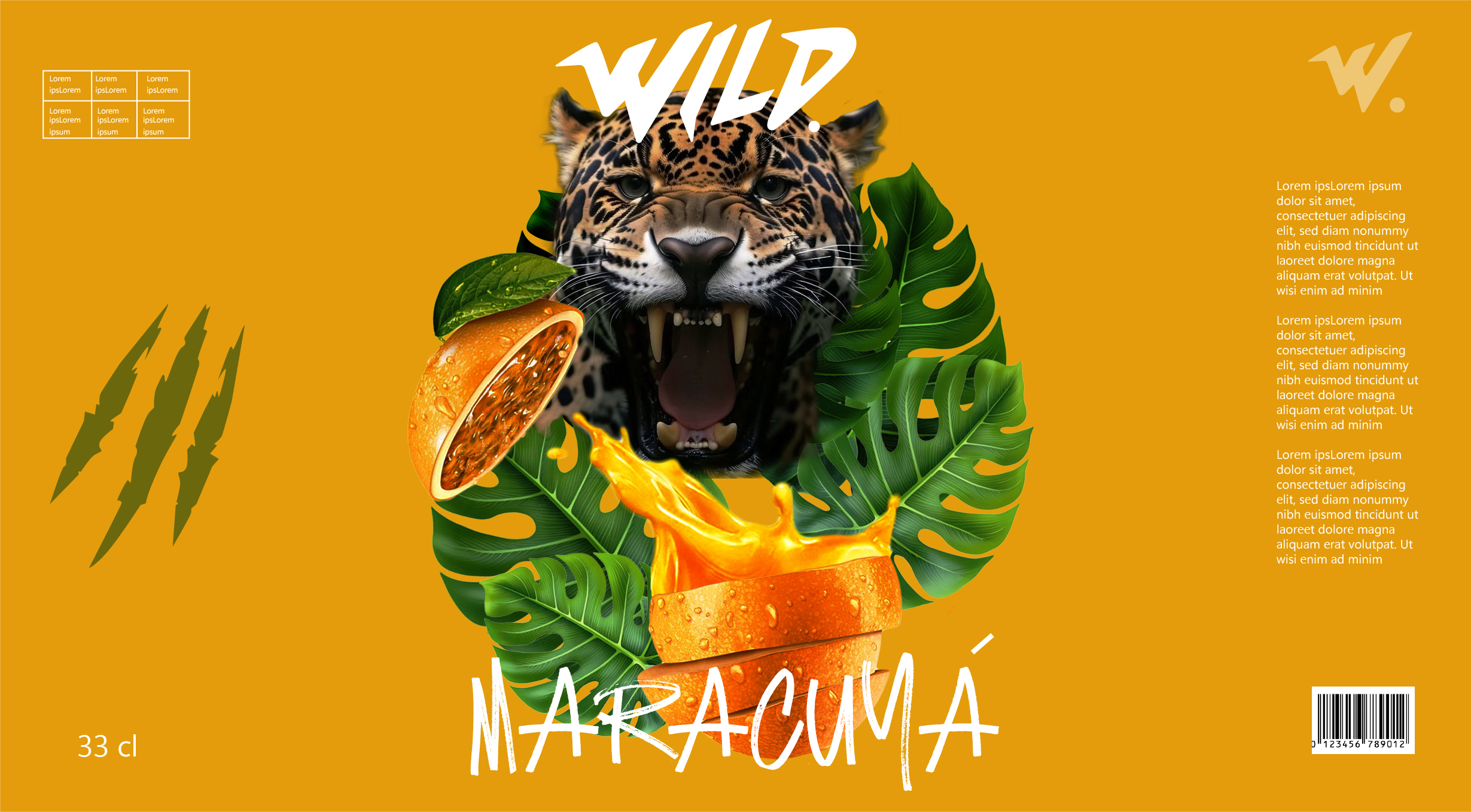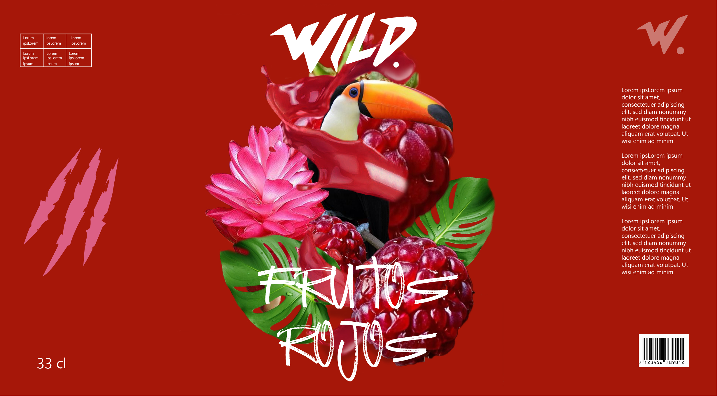 A short video presenting packaging designs for three tropical drinks by the fictional brand “Wild.” Each flavor is associated with a wild animal — a jaguar, a toucan, and a snake — reflecting the tropical theme through bold visuals and creative illustration
